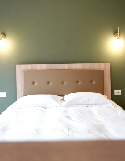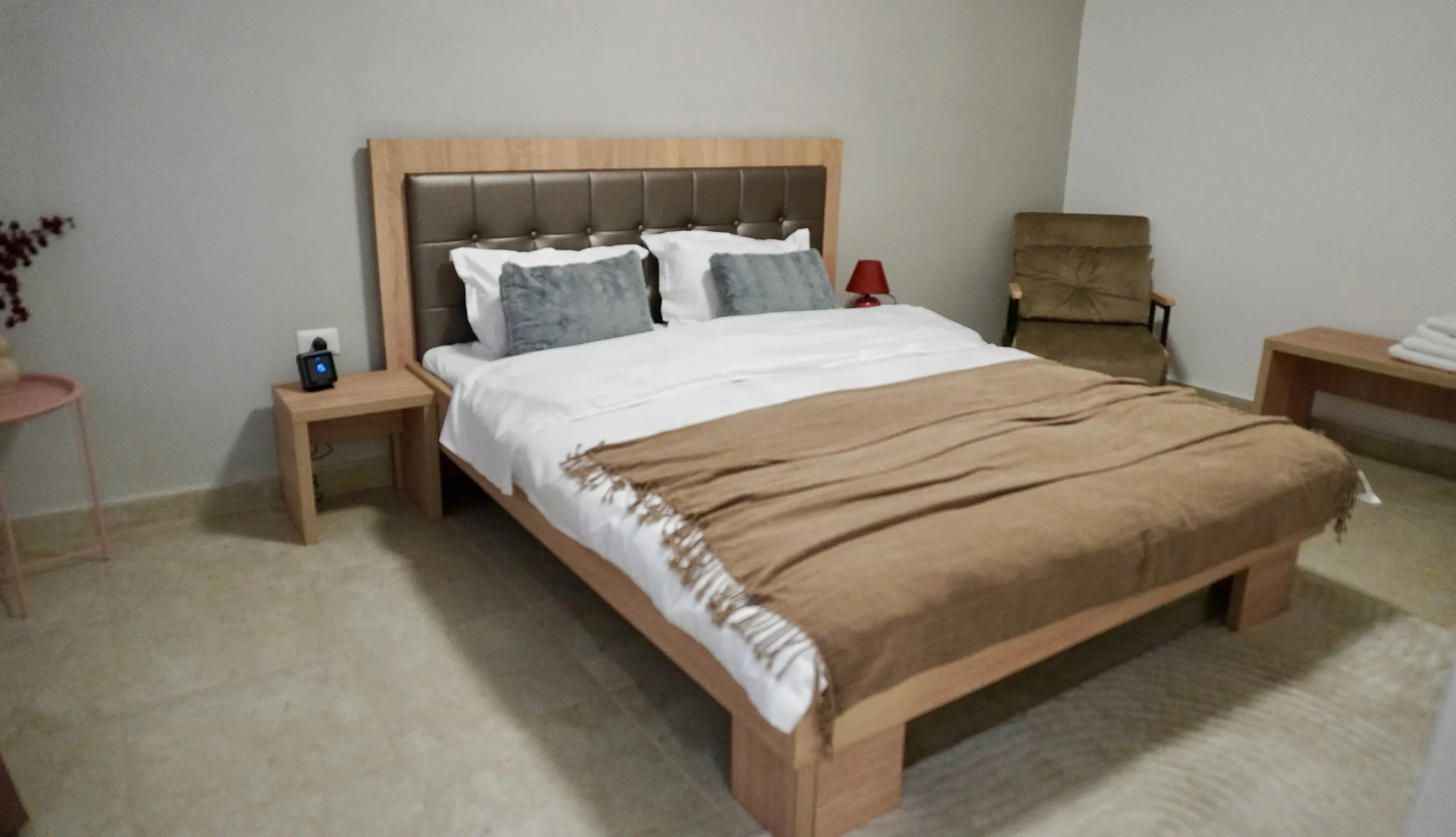 Camerele au pat dublu, fotoliu extensibil și TV. Fiecare vilă dispune de două băi complet aprovizionate.